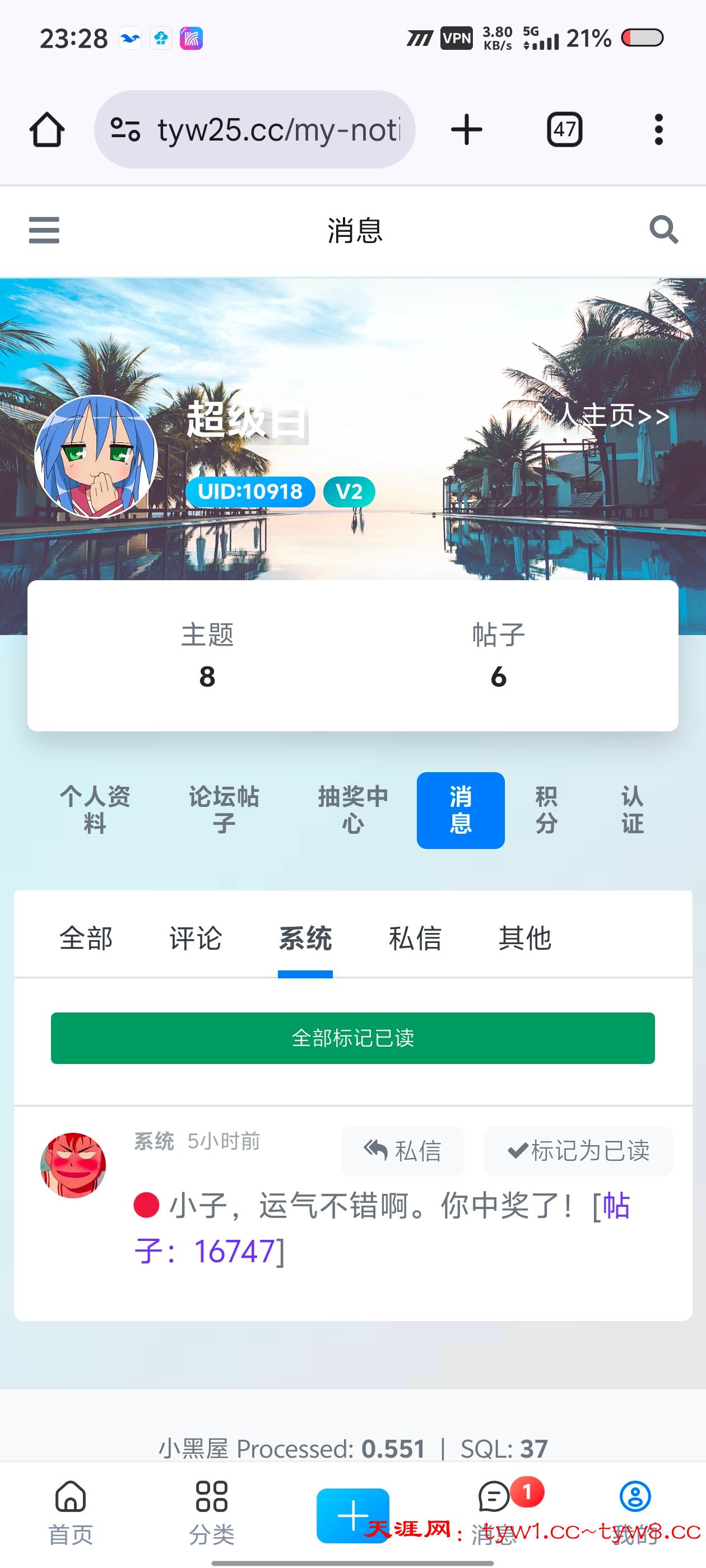 天涯中奖