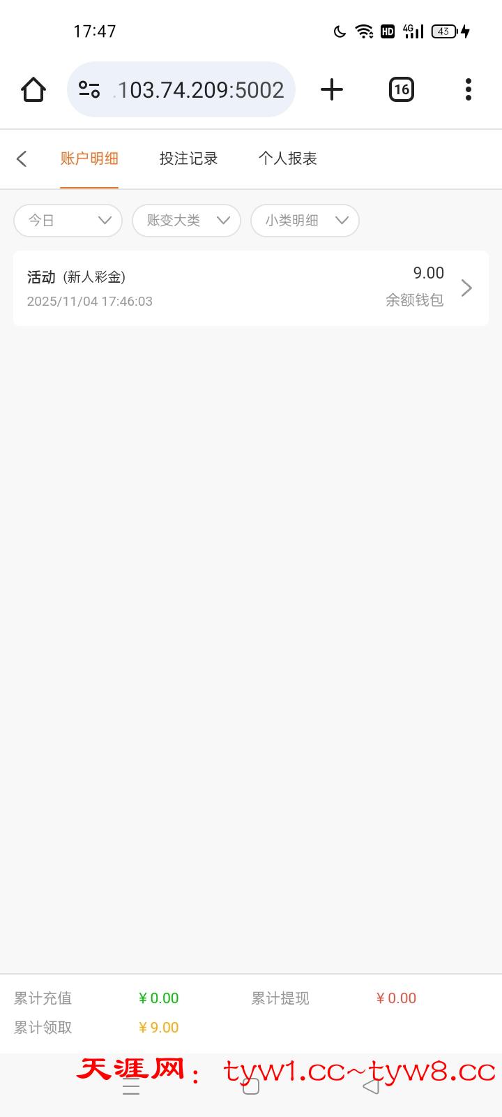 手机号接码送9,原来注册不是,现在刚领到。提款自测,出款反馈一下。没有的话过几天再看看