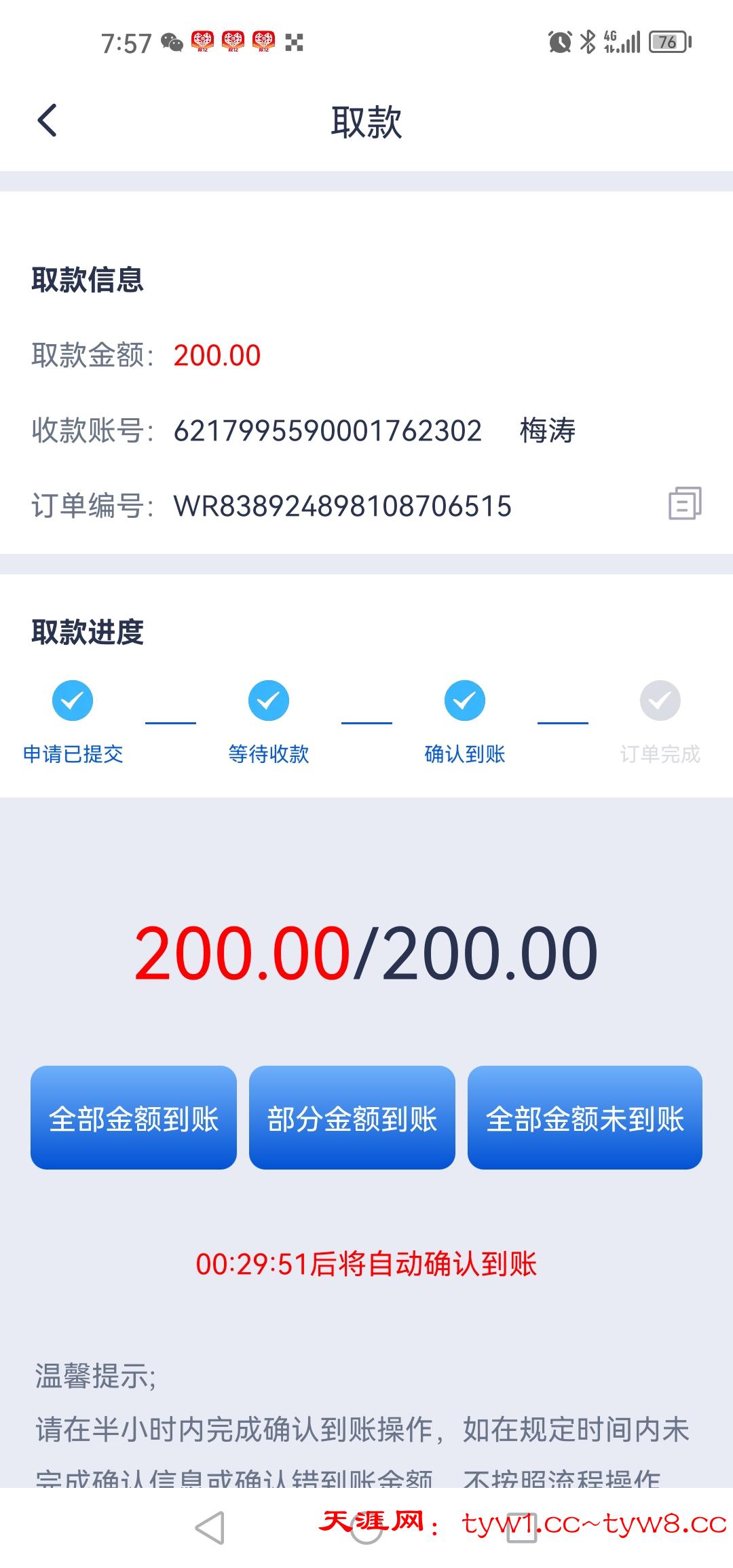 提款200成功,申请账号chenmaolin520