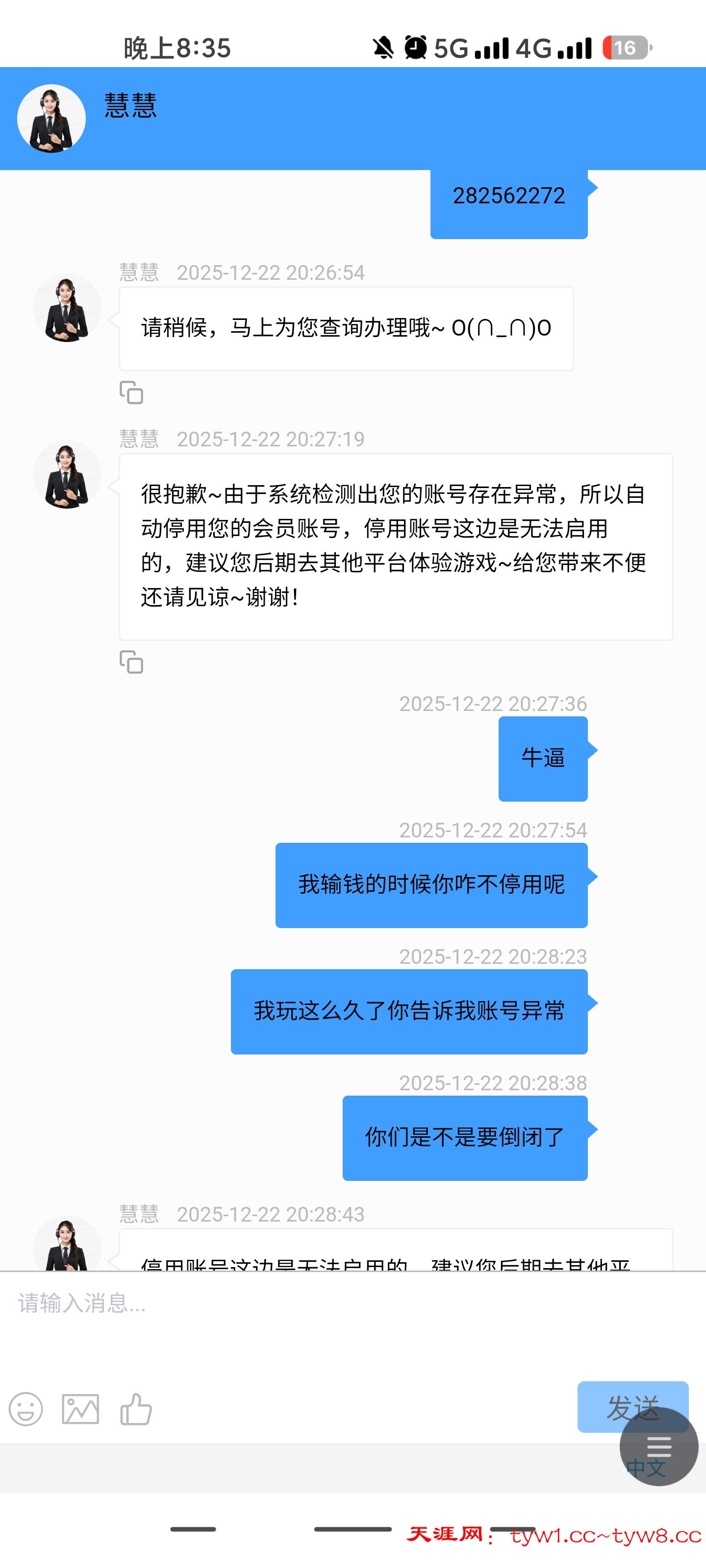 5544黑台玩了几个月还赢了一点钱今天他妈直接封账号真的活不起了老子还充值了一万多