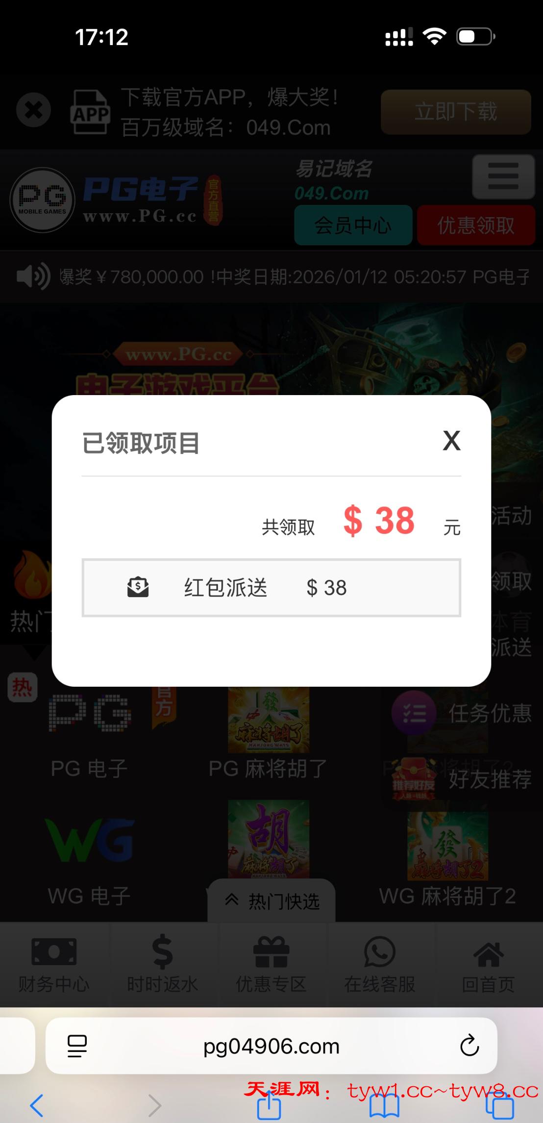 登录上就会弹一个小红包送38