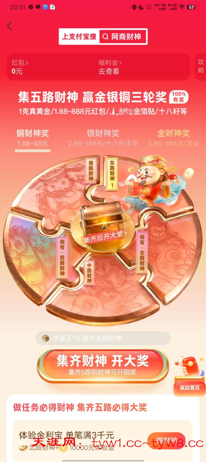 【支付宝财神】最高1g黄金