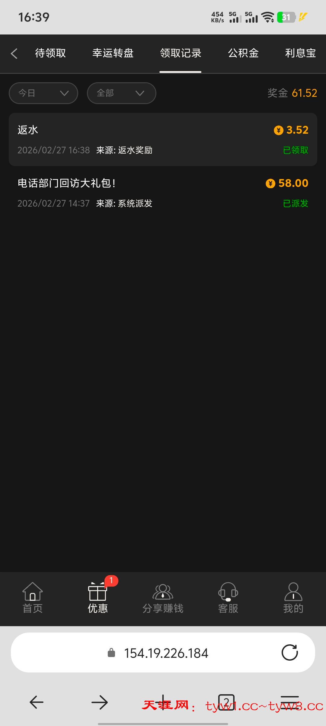 这叼毛台终于舍得给我电话彩金了,有号的老哥们去看看,网址3016.com