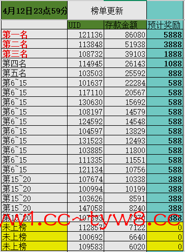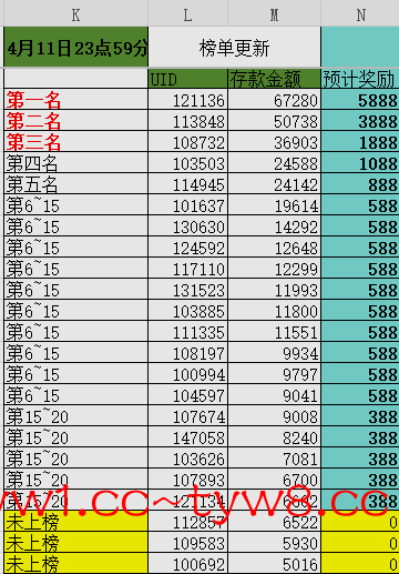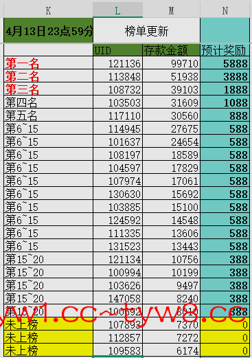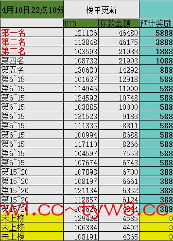 ⚜️活动⑤:(存款排行榜奖励4月1日至4月15日)