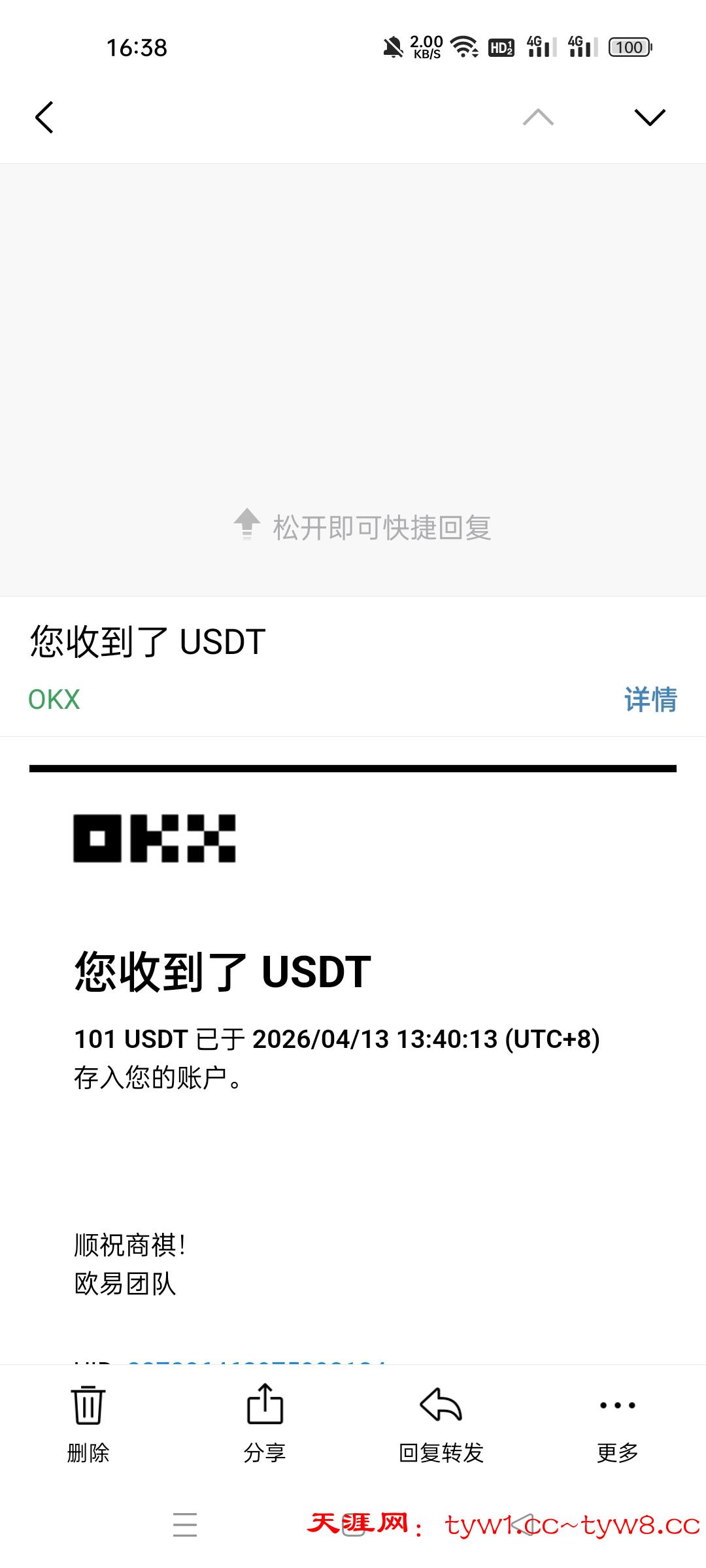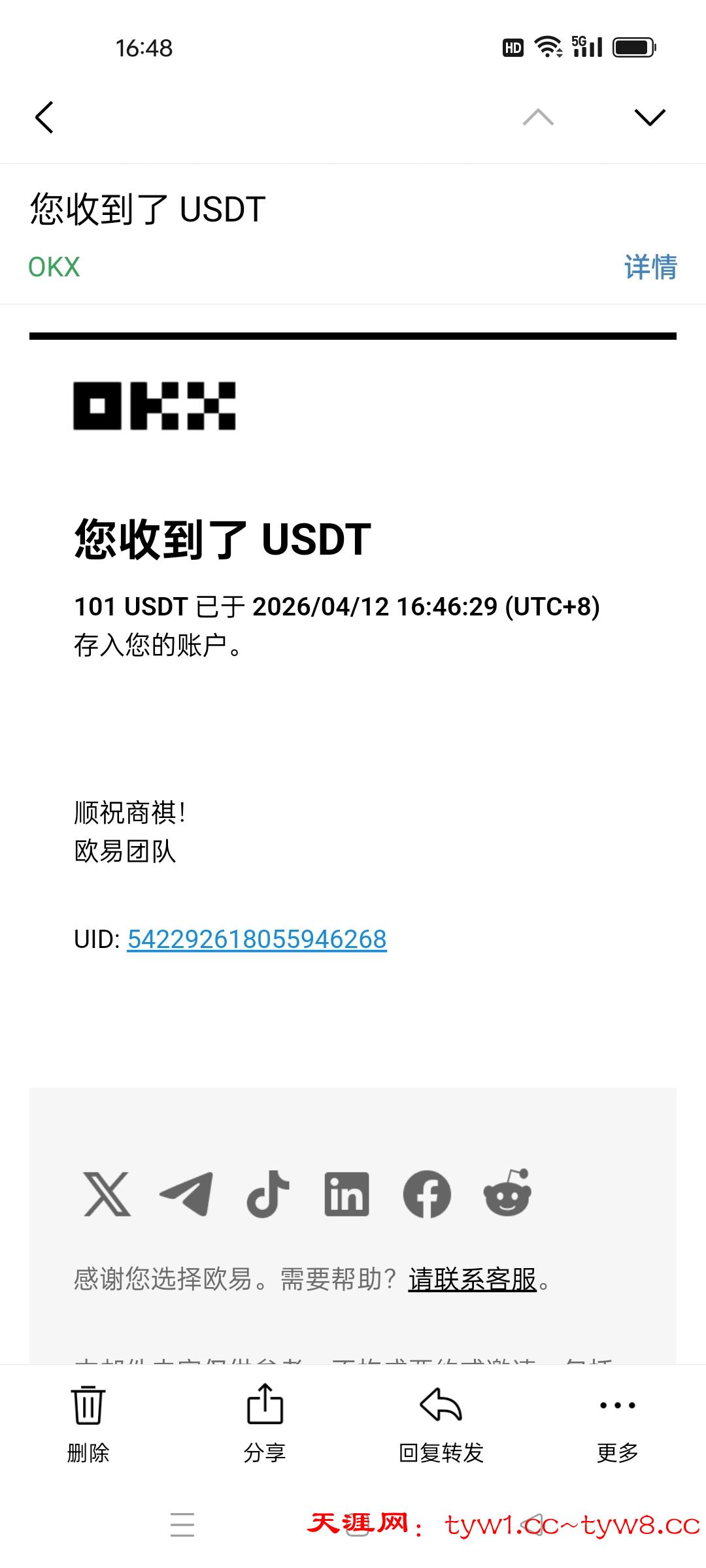 返现收到,感谢天涯