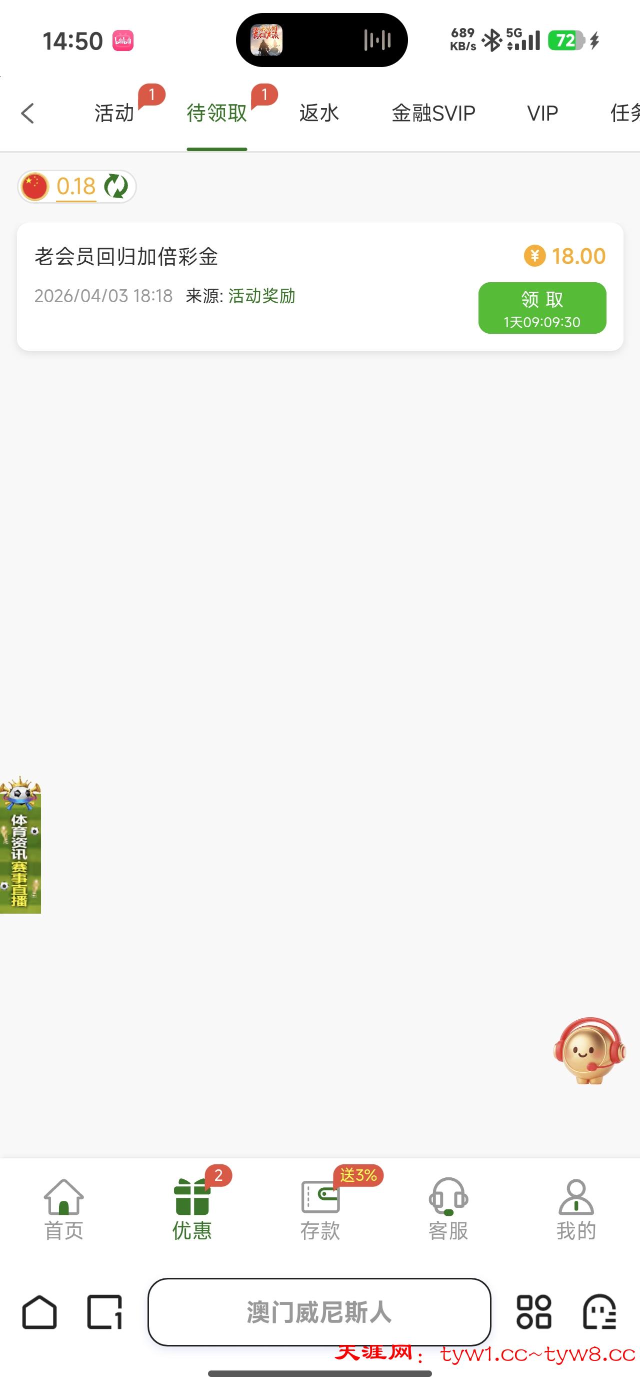 【威尼斯913】一 一回归彩金