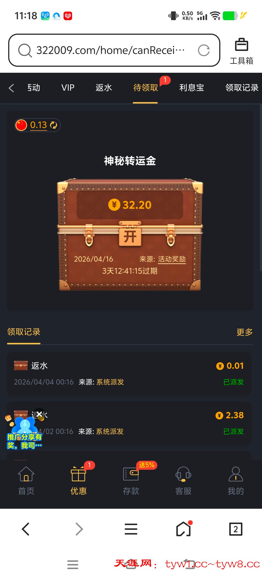 领取条件:最近三天冲过100直接领,不满足的就别去了