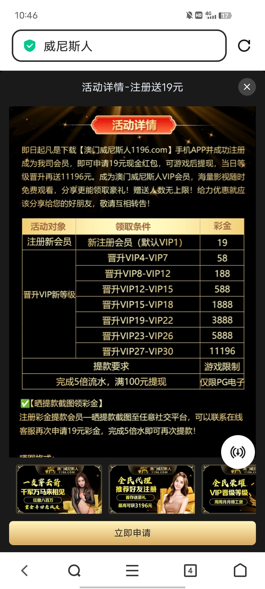 绑卡后活动里面申请